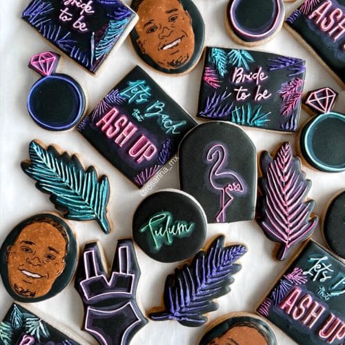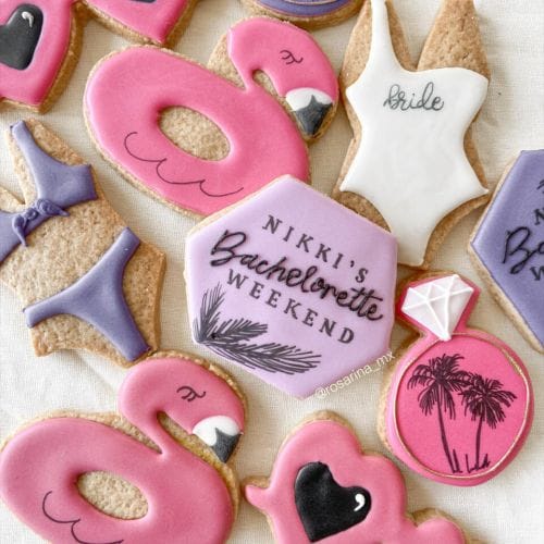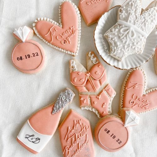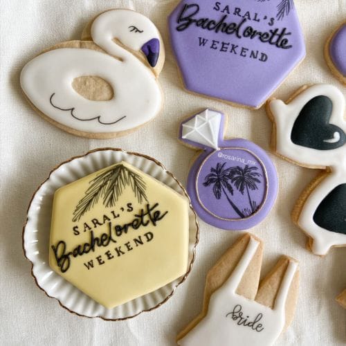 To say we are obsessed with these cookies is an understatement! Choose from a variety of themes and customize them with the bride to be or birthday babe’s favorite color!! These cookies are unique, memorable, delicious and always a favorite party favor!