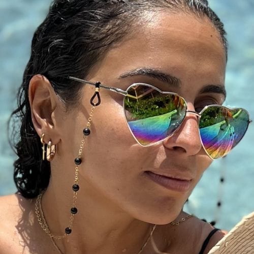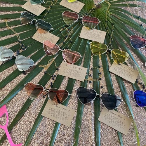 An adorable gift that enhances your pictures, and is the perfect take-home present that can be re-used all year long! The sunglass chains are onyx, and handmade right here in Tulum!