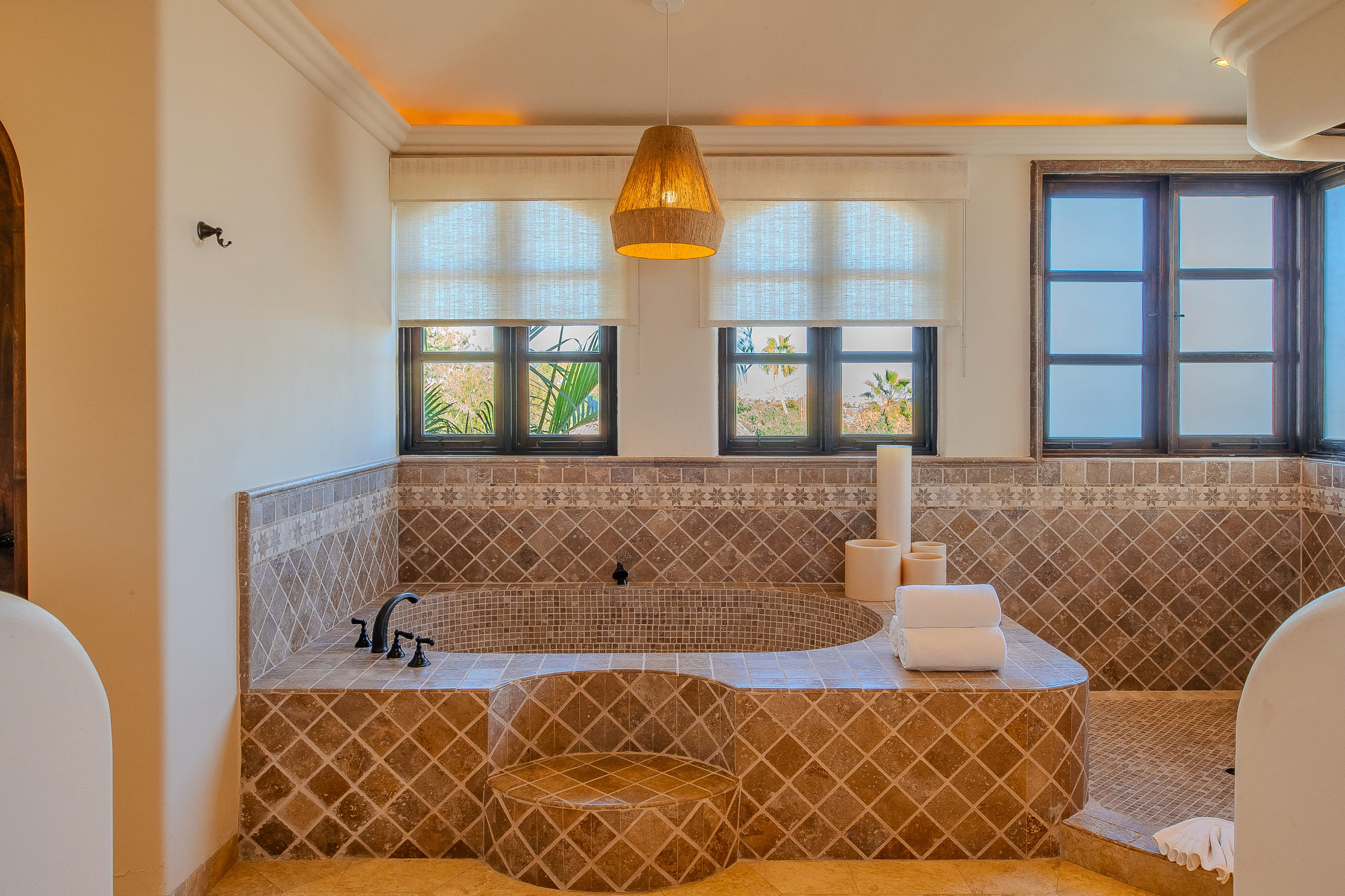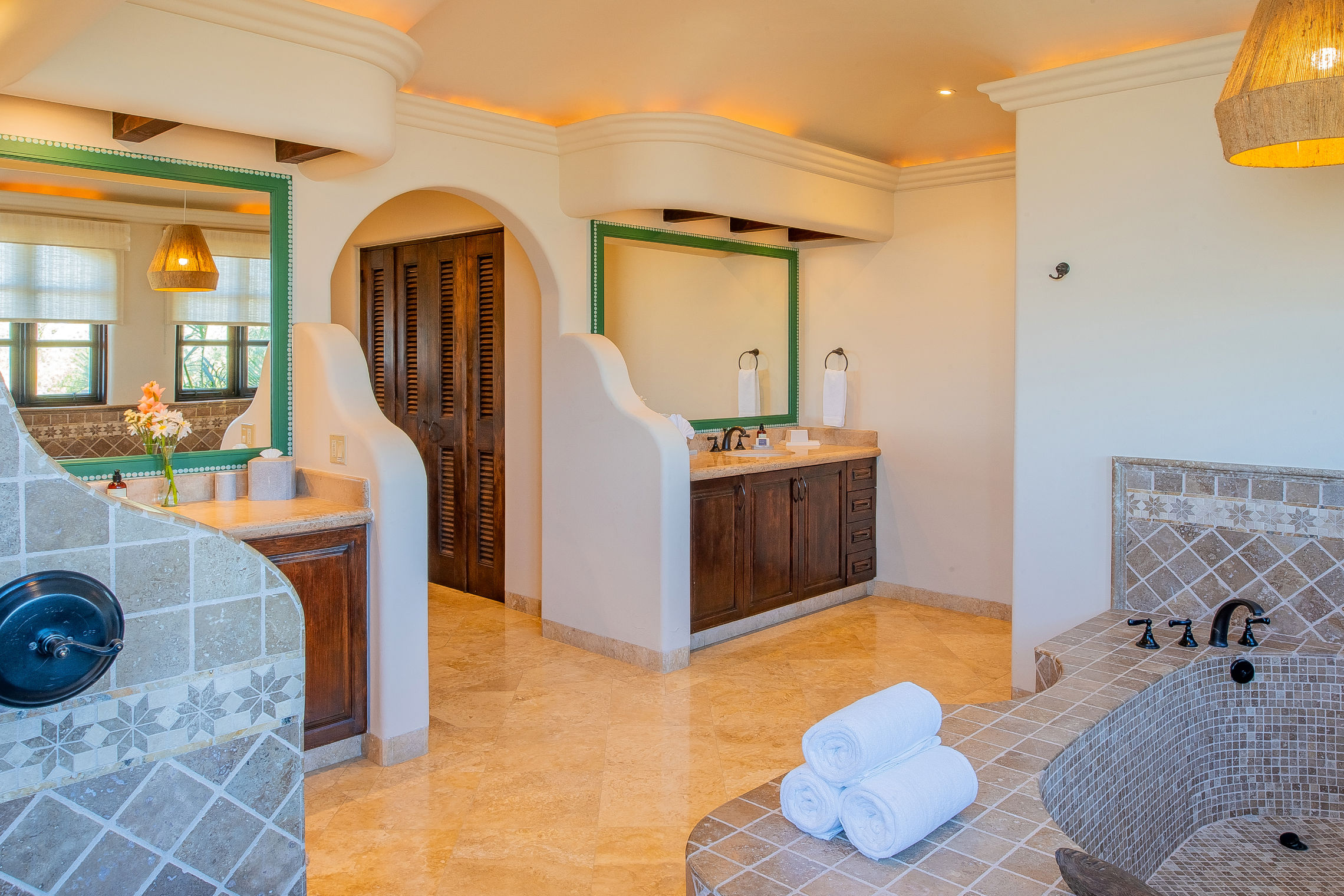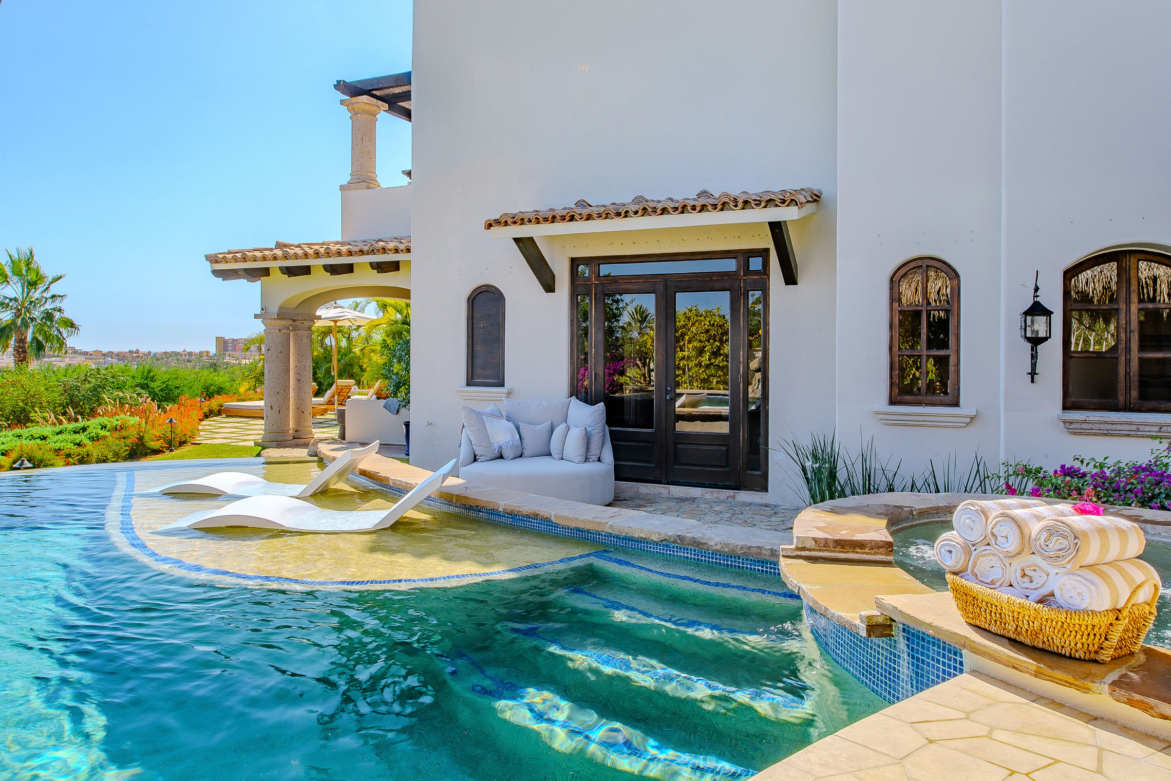 Outside, a sparkling pool and inviting fire pit set the stage for unforgettable evenings under the stars. Let your private chef prepare fresh seafood feasts while you sip margaritas from the wet bar or lounge in one of ten sun chairs overlooking the waves. Whether you’re teeing off on world-class golf courses, exploring Cabo by golf cart, or simply basking in the Baja sunshine, Casa Pacifica promises a retreat that blends togetherness, adventure, and the luxury of complete relaxation.
