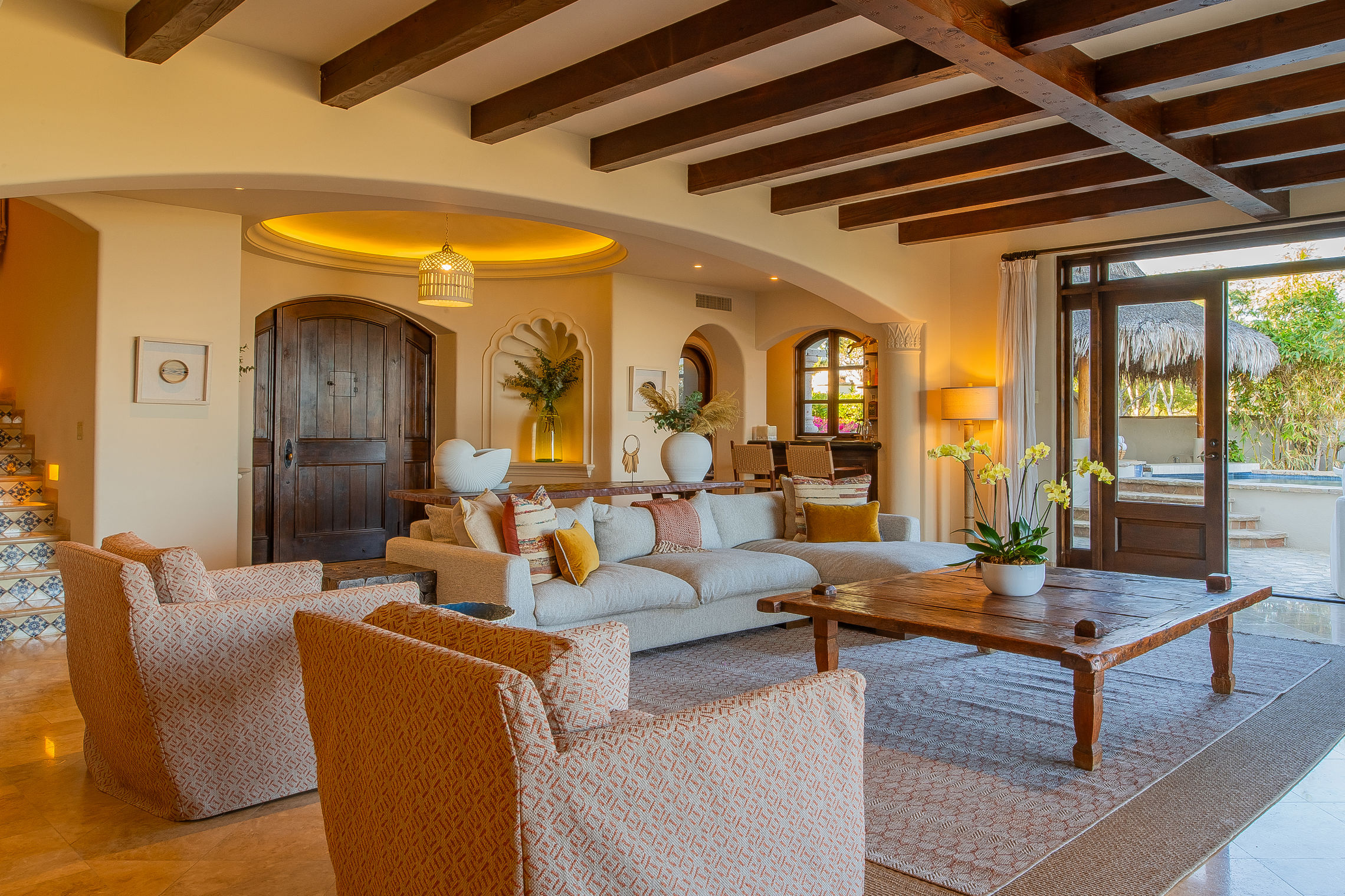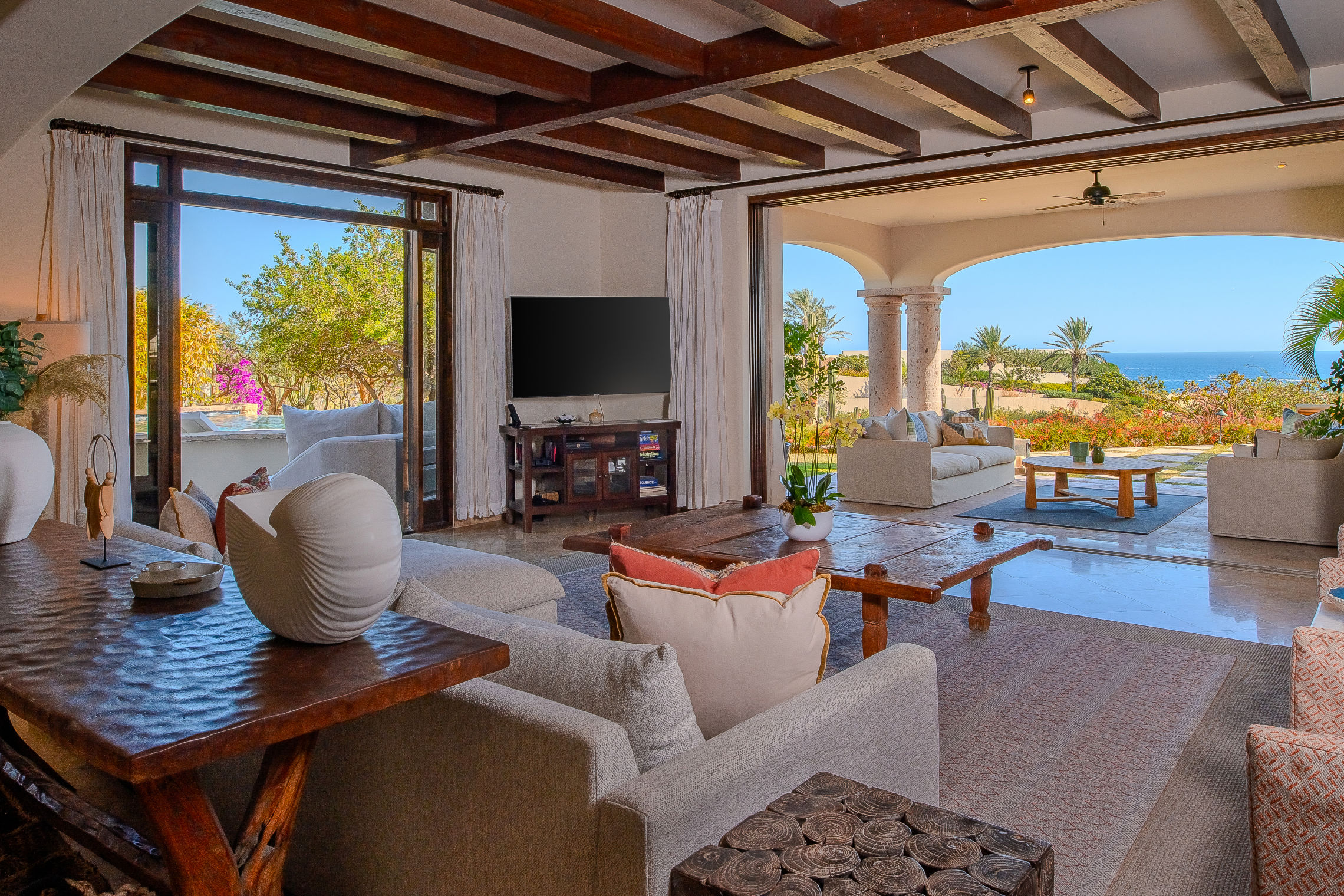 Welcome to Casa Pacifica, your sun-soaked sanctuary where refined comfort meets effortless coastal living in Cabo del Sol. This beautifully renovated 4-bedroom villa offers over 10,000 square feet of airy indoor-outdoor spaces with panoramic Pacific Ocean views at every turn. Each bedroom is designed as a personal haven with plush bedding, sleek ensuite baths, and private terraces that invite you to greet each sunrise in peace. Gather in the spacious living area, share tapas and stories around the elegant dining table, or unwind under the palapa as the sea breeze drifts in.