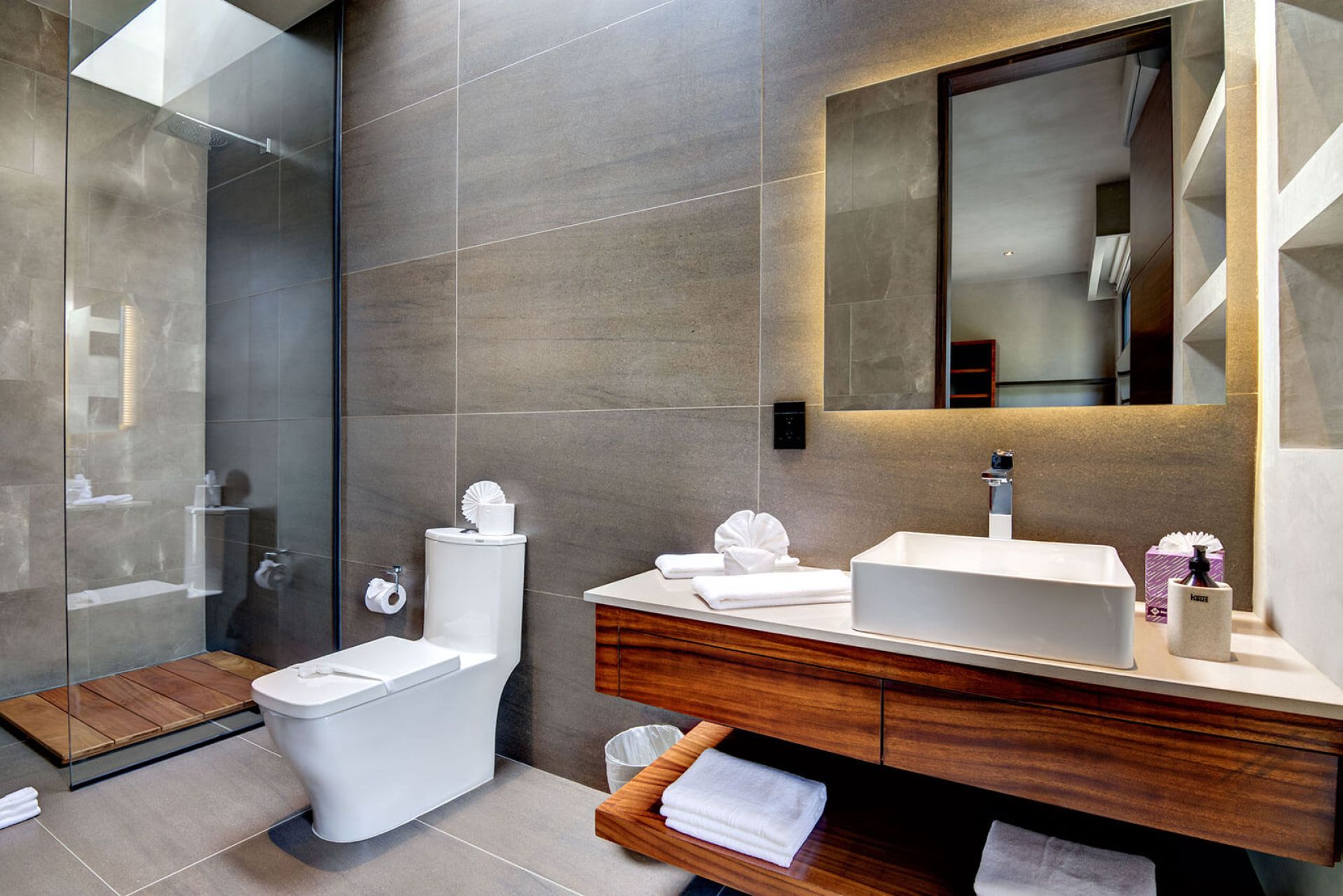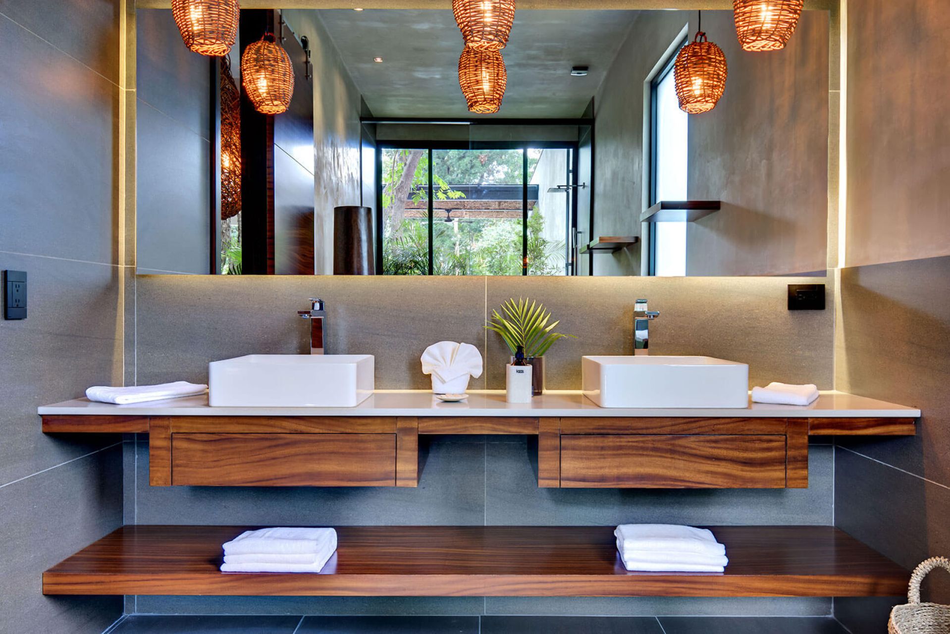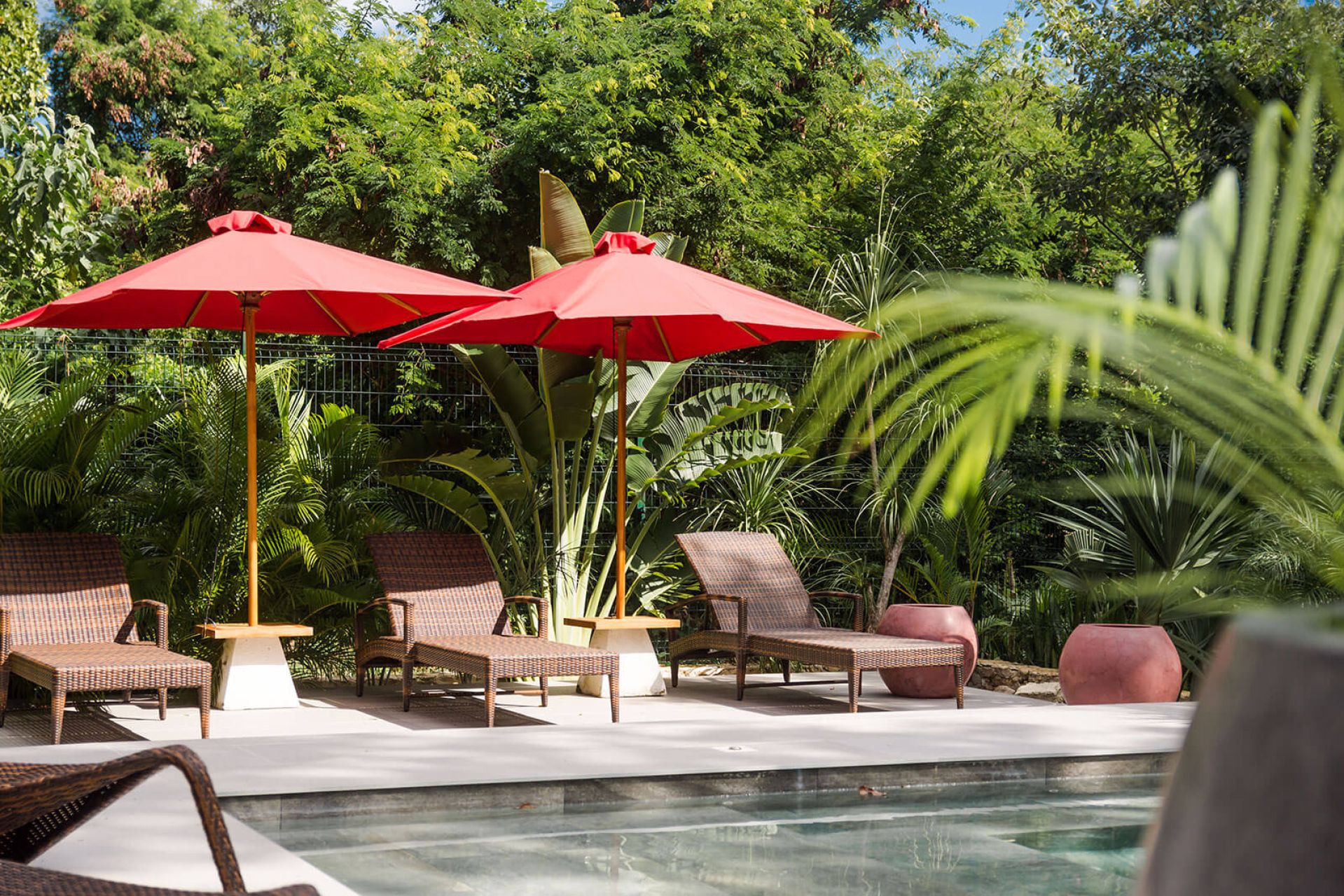 The villa offers both privacy and luxury with spacious indoor and outdoor areas surrounded by native greenery. Two upstairs bedrooms share a balcony with garden views, while a ground-floor suite offers direct access to the pool and deck. All bedrooms include large ensuite bathrooms. Daily housekeeping and private chef services are included, making this a perfect retreat for a refined getaway.