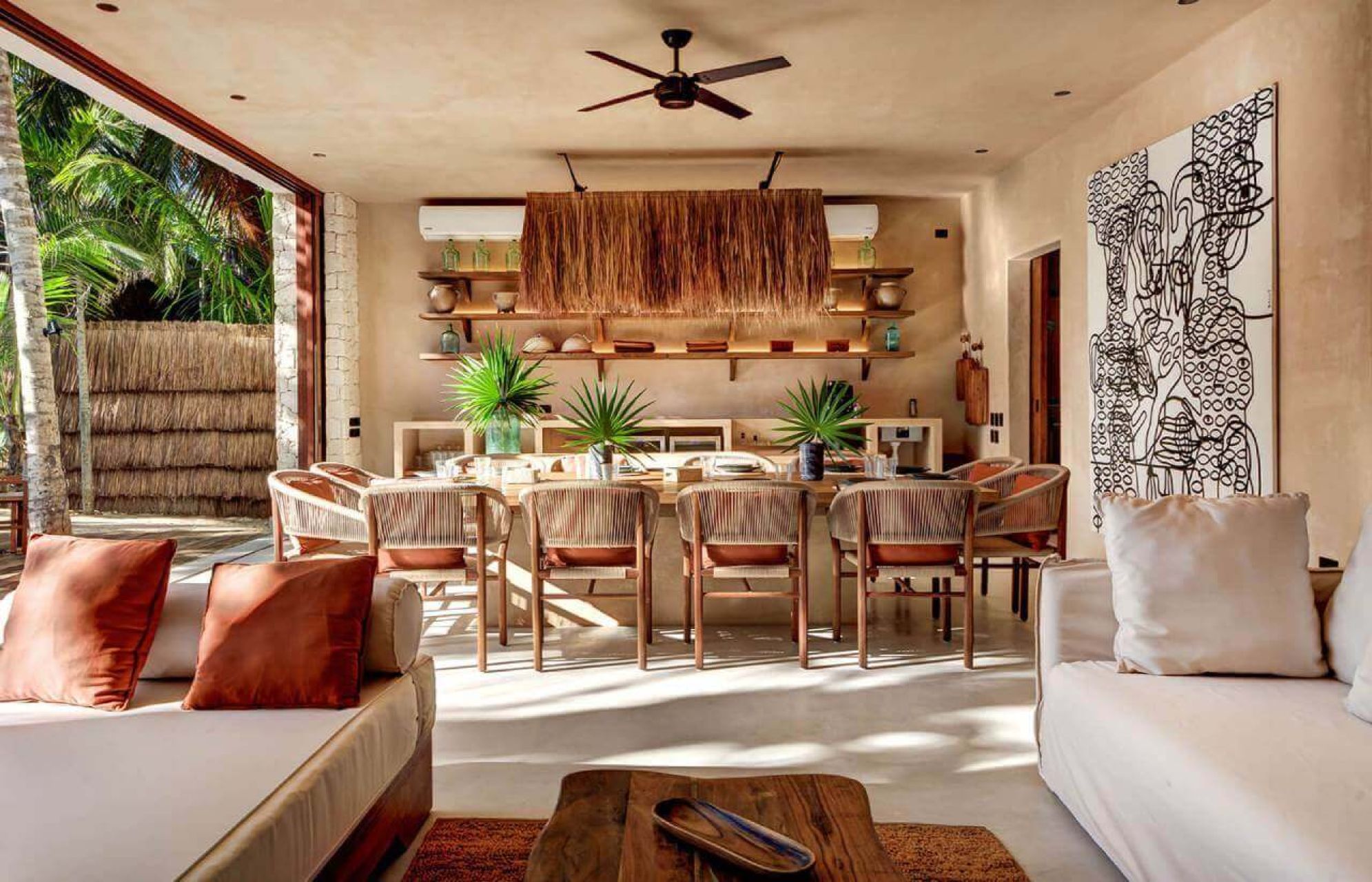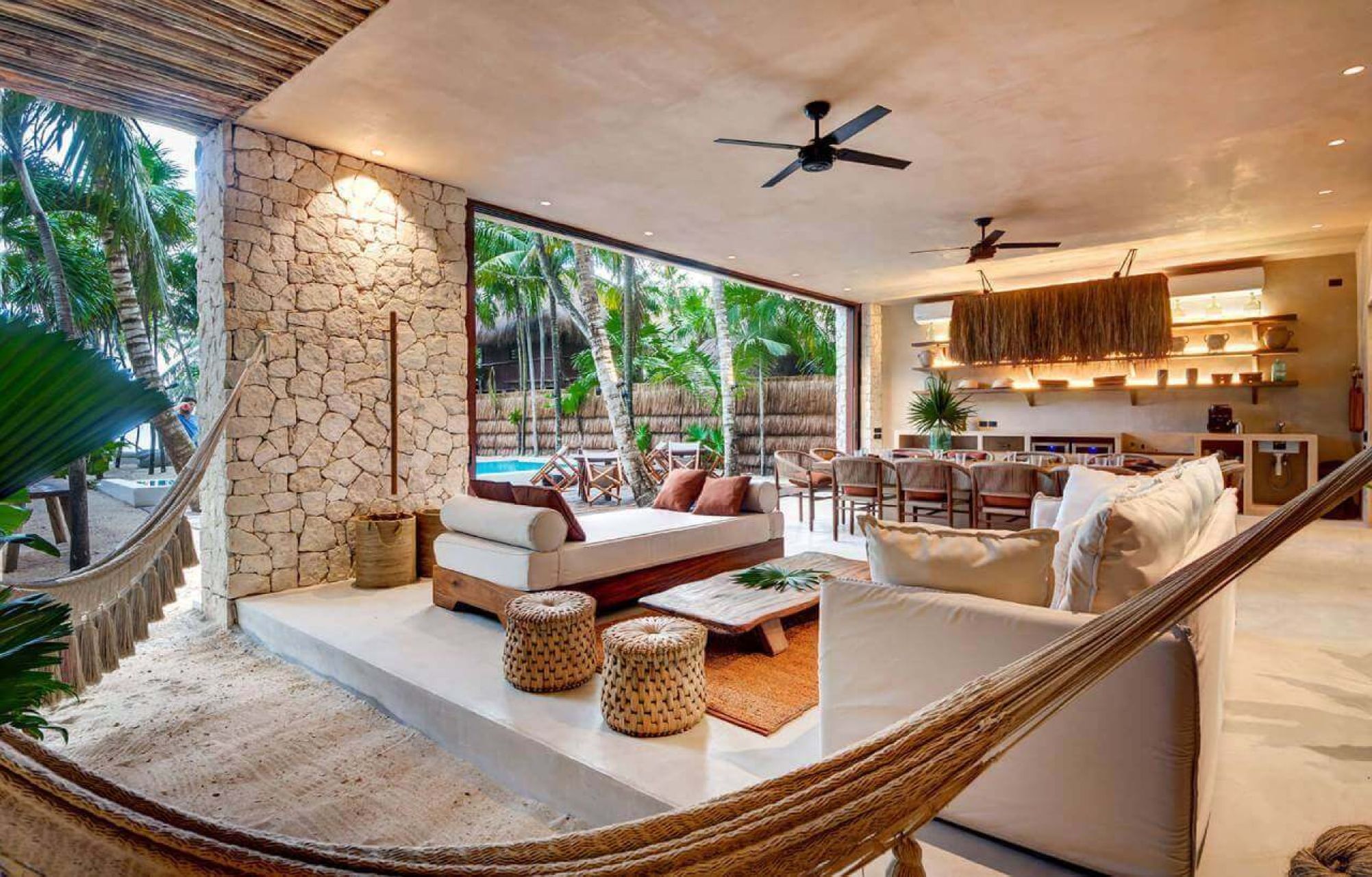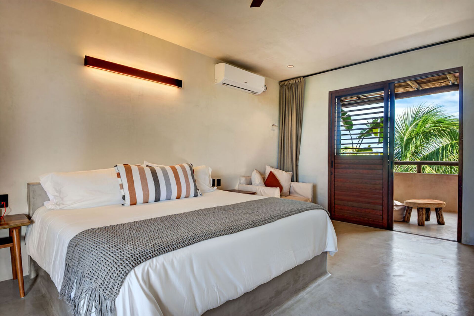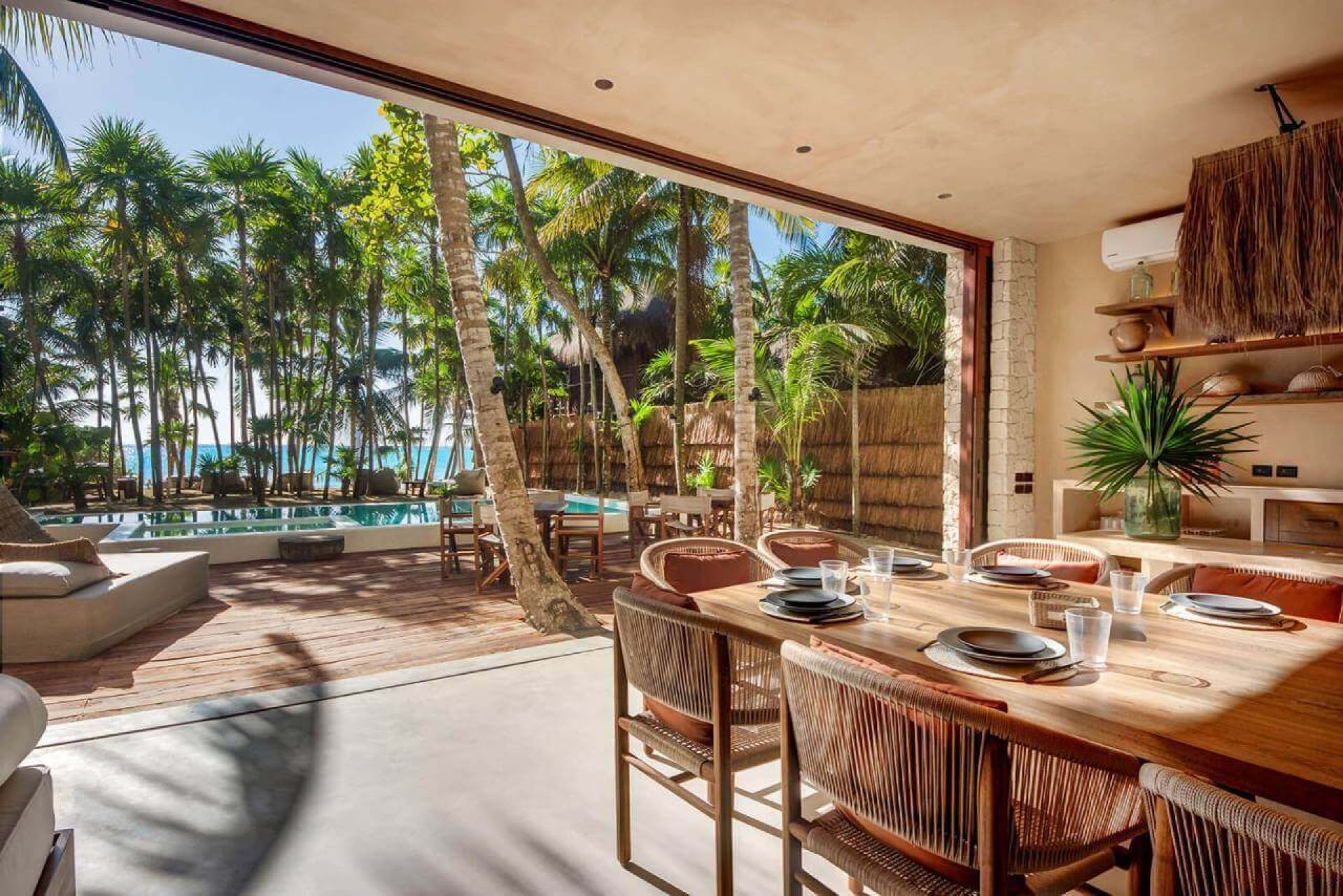 This stunning 5-bedroom beachfront villa in tranquil Soliman Bay offers the perfect getaway on a private white-sand beach lined with palms, sunbeds, and hammocks. Each bedroom features an ensuite bathroom with organic toiletries and soft linens, blending tropical Tulum style with elegant touches throughout the home. Relax with the warm breeze just steps from your room or enjoy the pool and deck overlooking the calm blue waters.