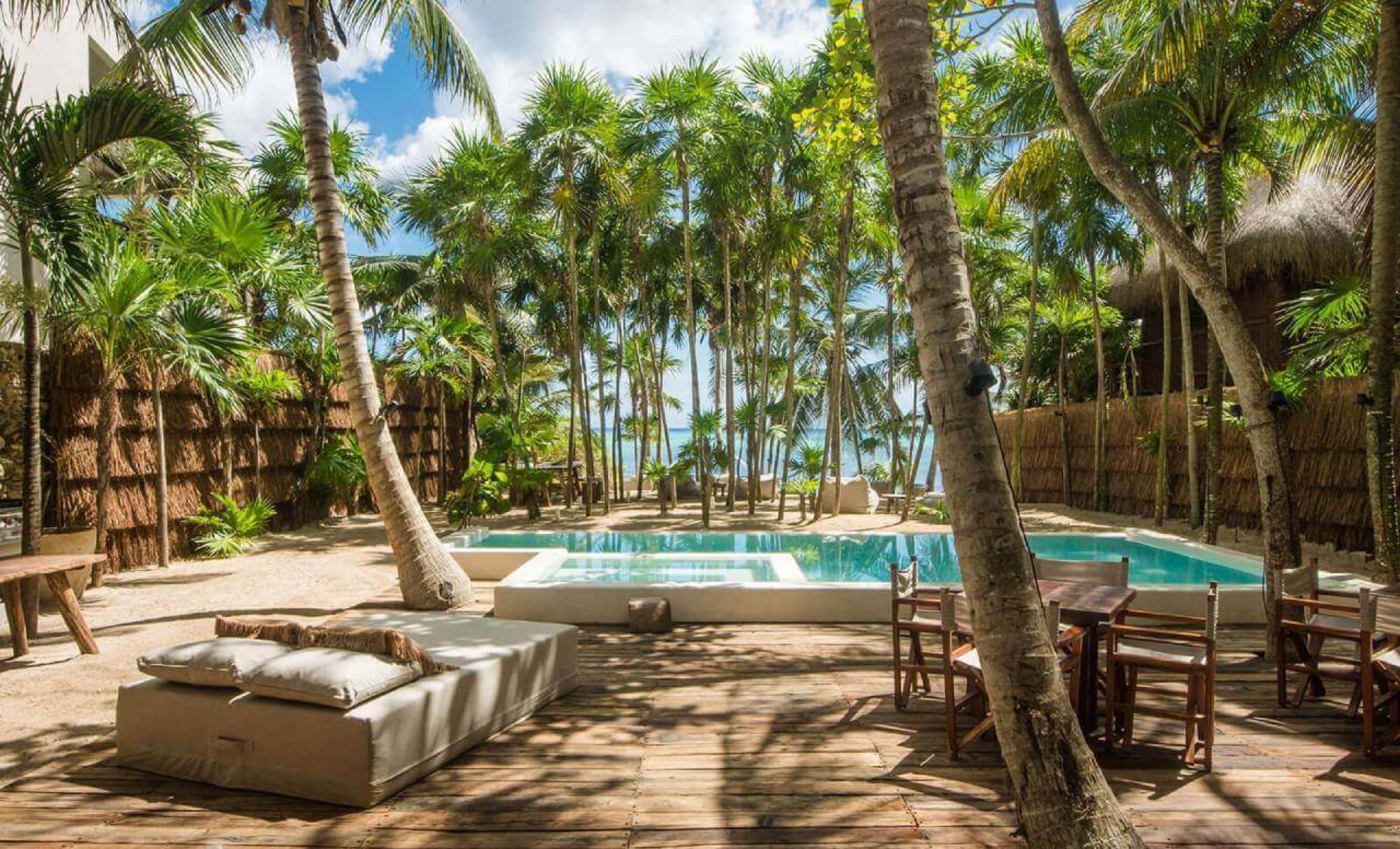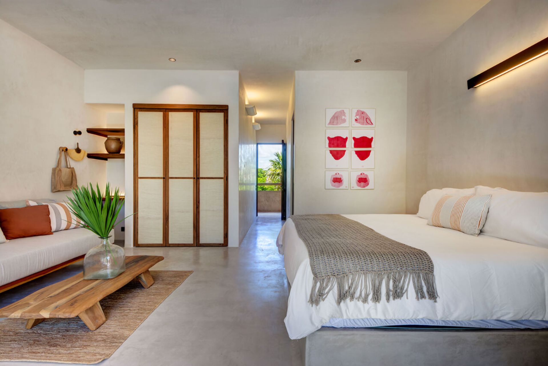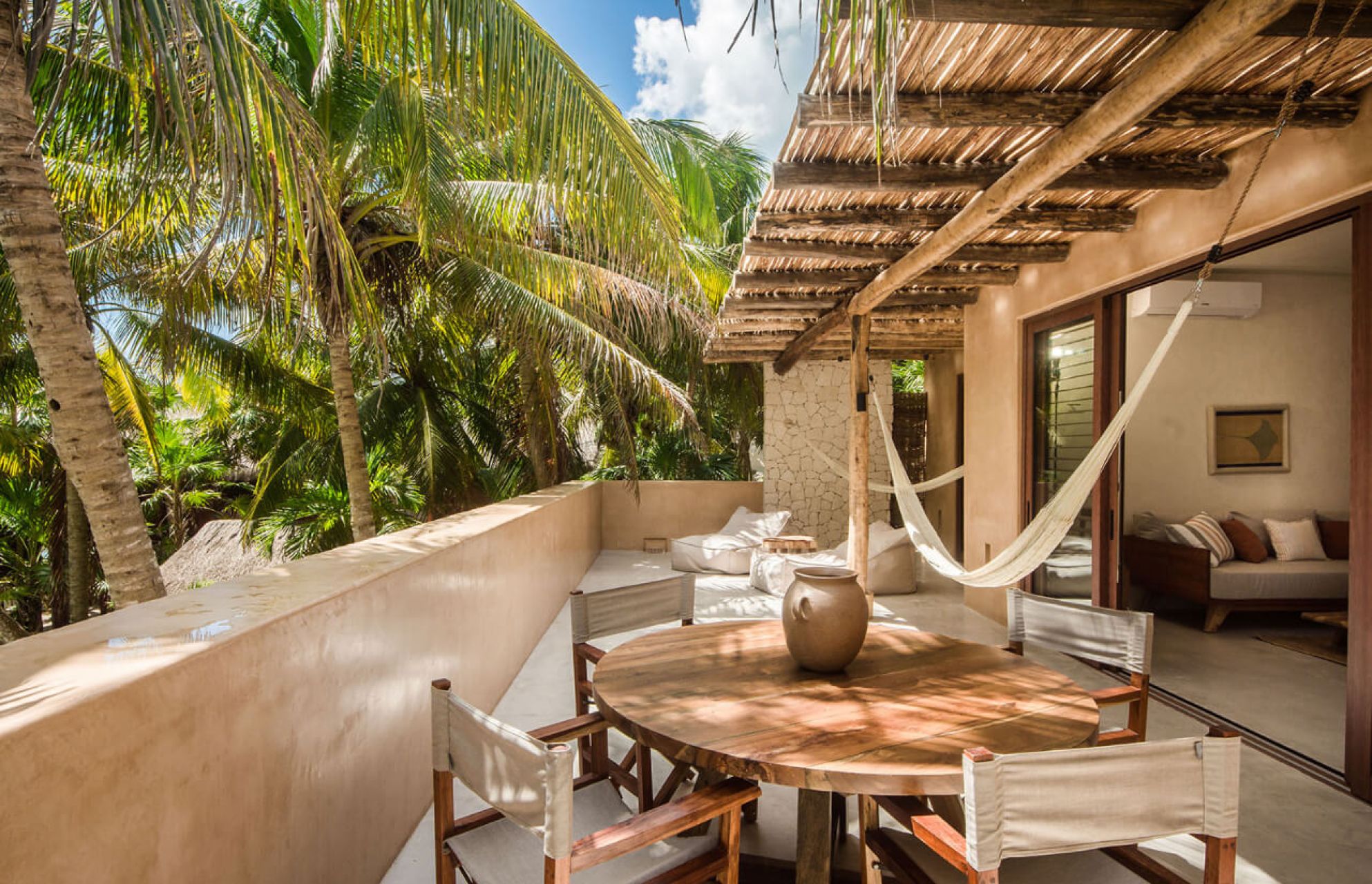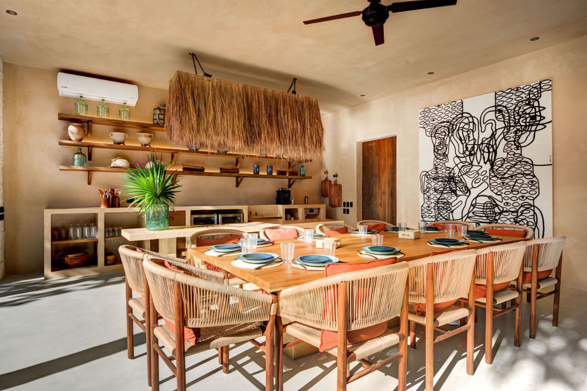 This stunning 5-bedroom beachfront villa in tranquil Soliman Bay offers the perfect getaway on a private white-sand beach lined with palms, sunbeds, and hammocks. Each bedroom features an ensuite bathroom with organic toiletries and soft linens, blending tropical Tulum style with elegant touches throughout the home. Relax with the warm breeze just steps from your room or enjoy the pool and deck overlooking the calm blue waters.
