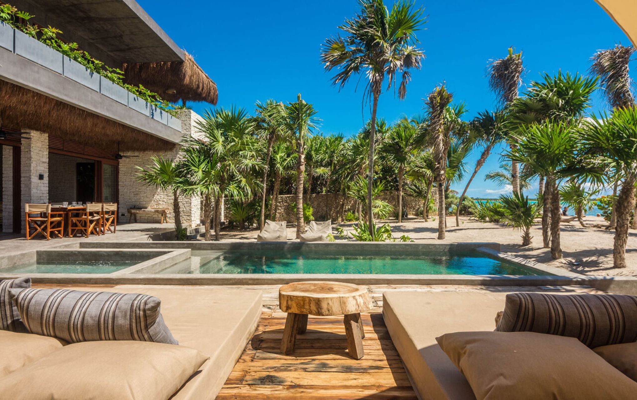 The villa is also a food lover’s paradise with a personal chef on call and a wood-fired oven for cooking enthusiasts. Each bedroom opens to a shared balcony perfect for sunset views. Just steps from the shore, crystal-clear waters and vibrant coral reefs make Soliman Bay a snorkeling haven. Located only 15 minutes from lively Tulum, it offers peaceful privacy surrounded by jungle and sea, without sacrificing easy access to the Mexican Caribbean’s best experiences.