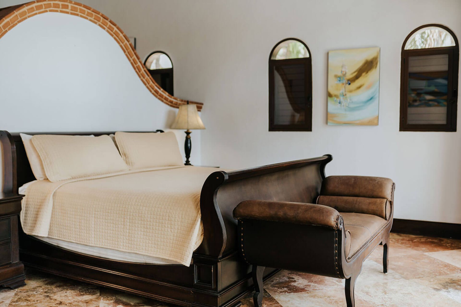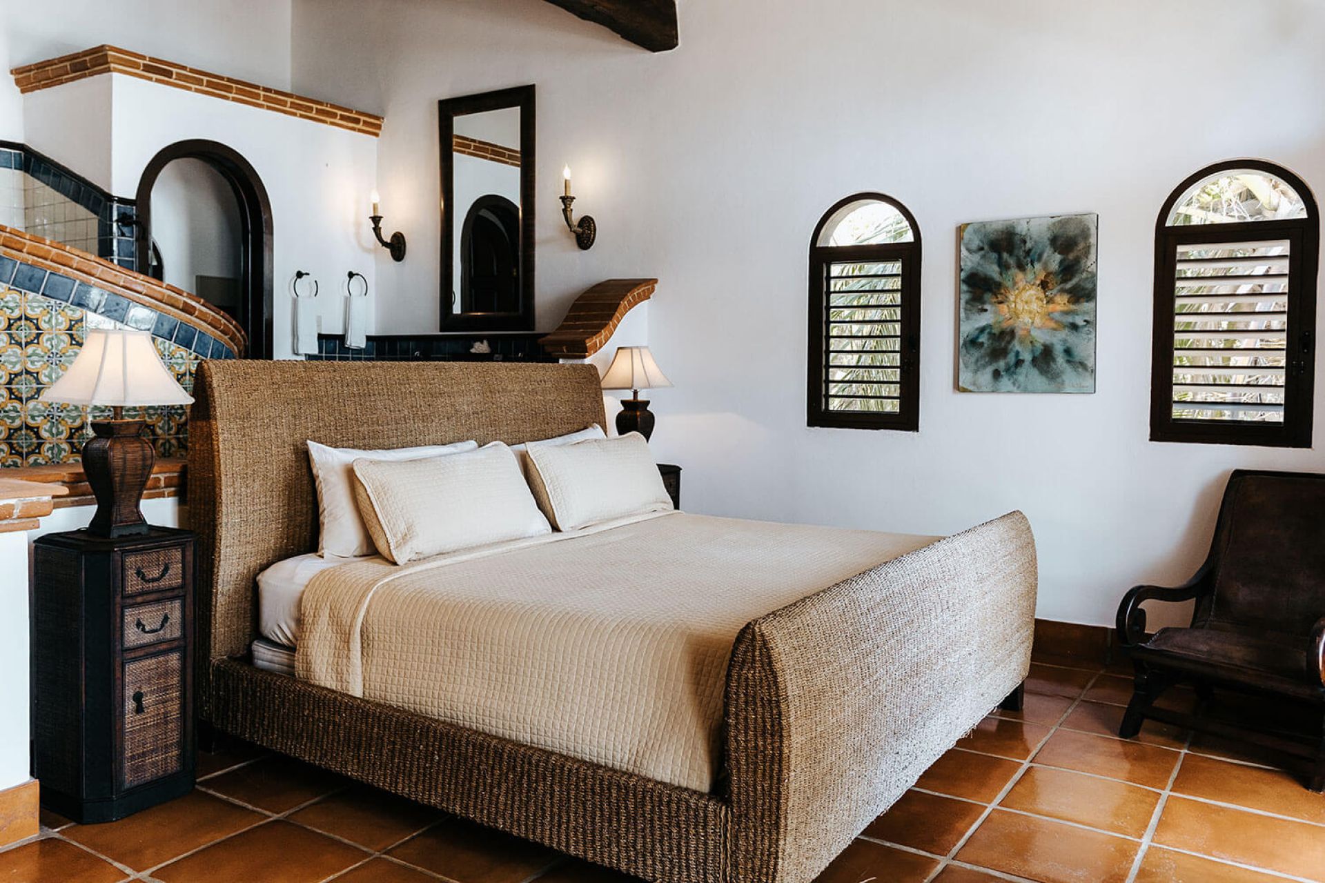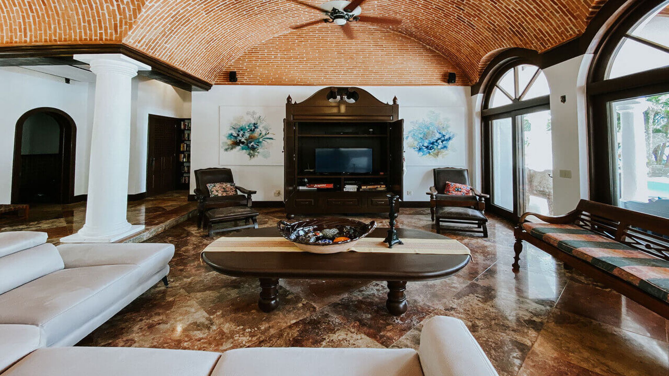 With its regal design and stunning location, this elegant 5-bedroom villa in Soliman Bay feels like a tropical movie set. Vaulted brick ceilings, grand columns, and archways create bright and calming spaces in classic Hacienda style. Four master suites offer breathtaking bay views, while the unique fifth bedroom on the rooftop opens to a spacious observation deck at the highest point in the bay.