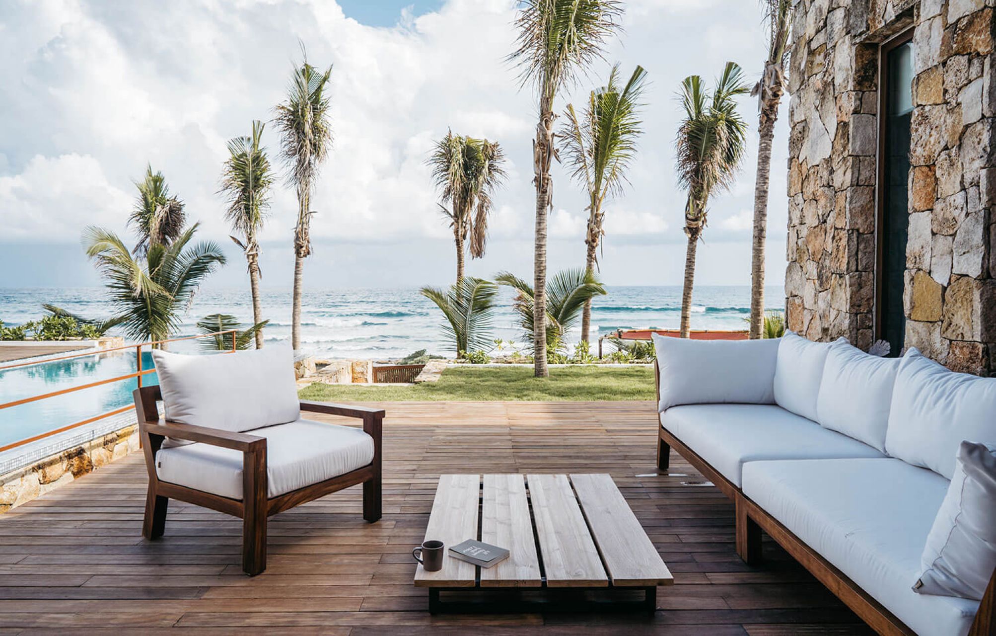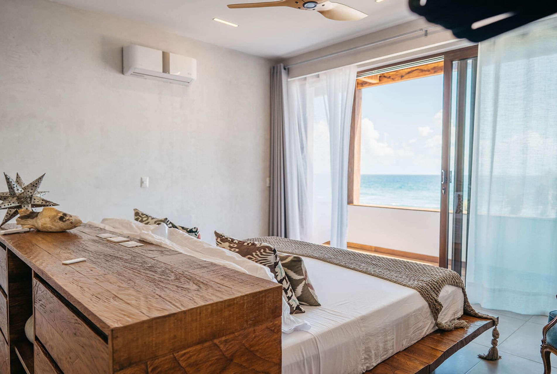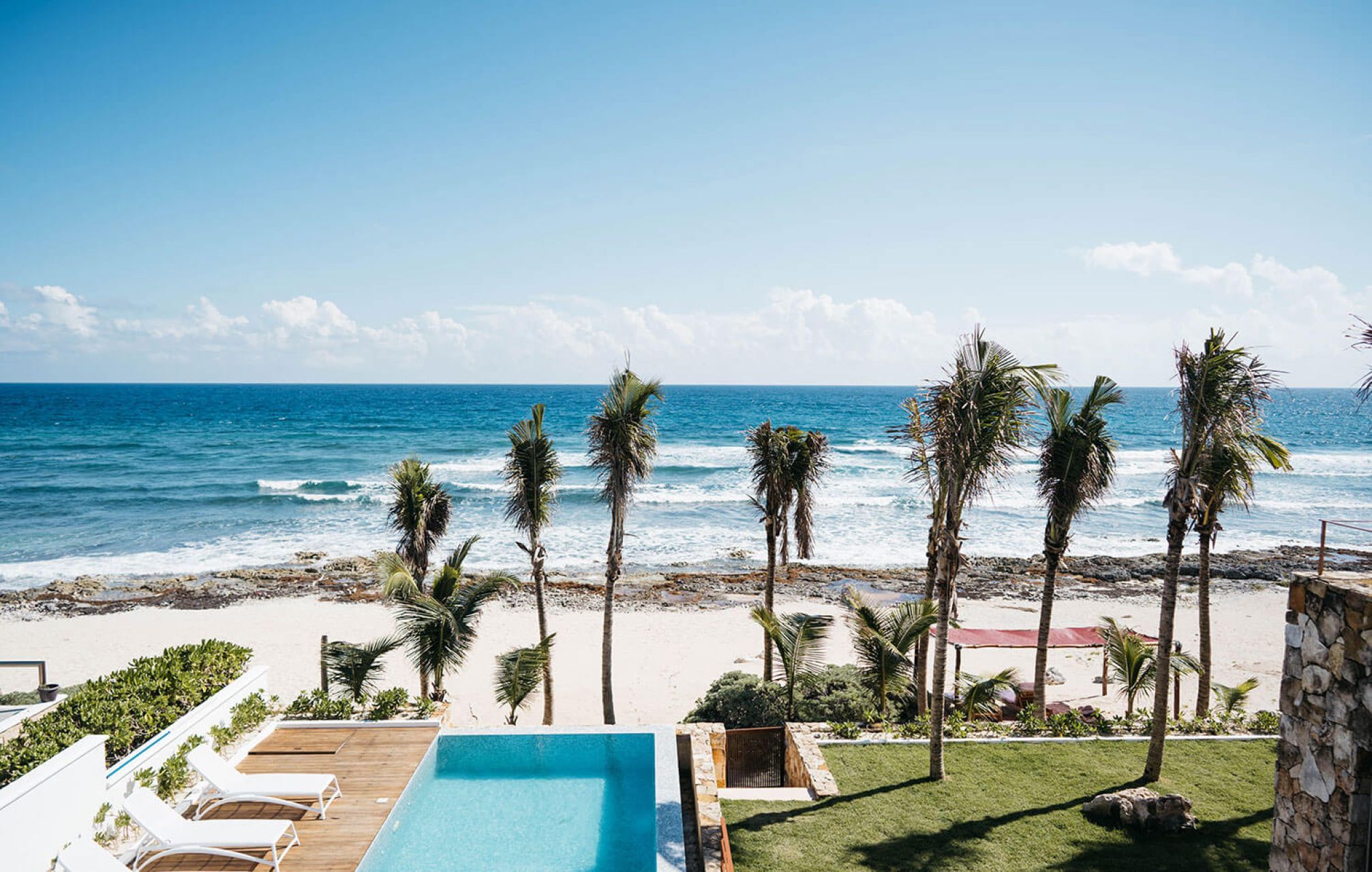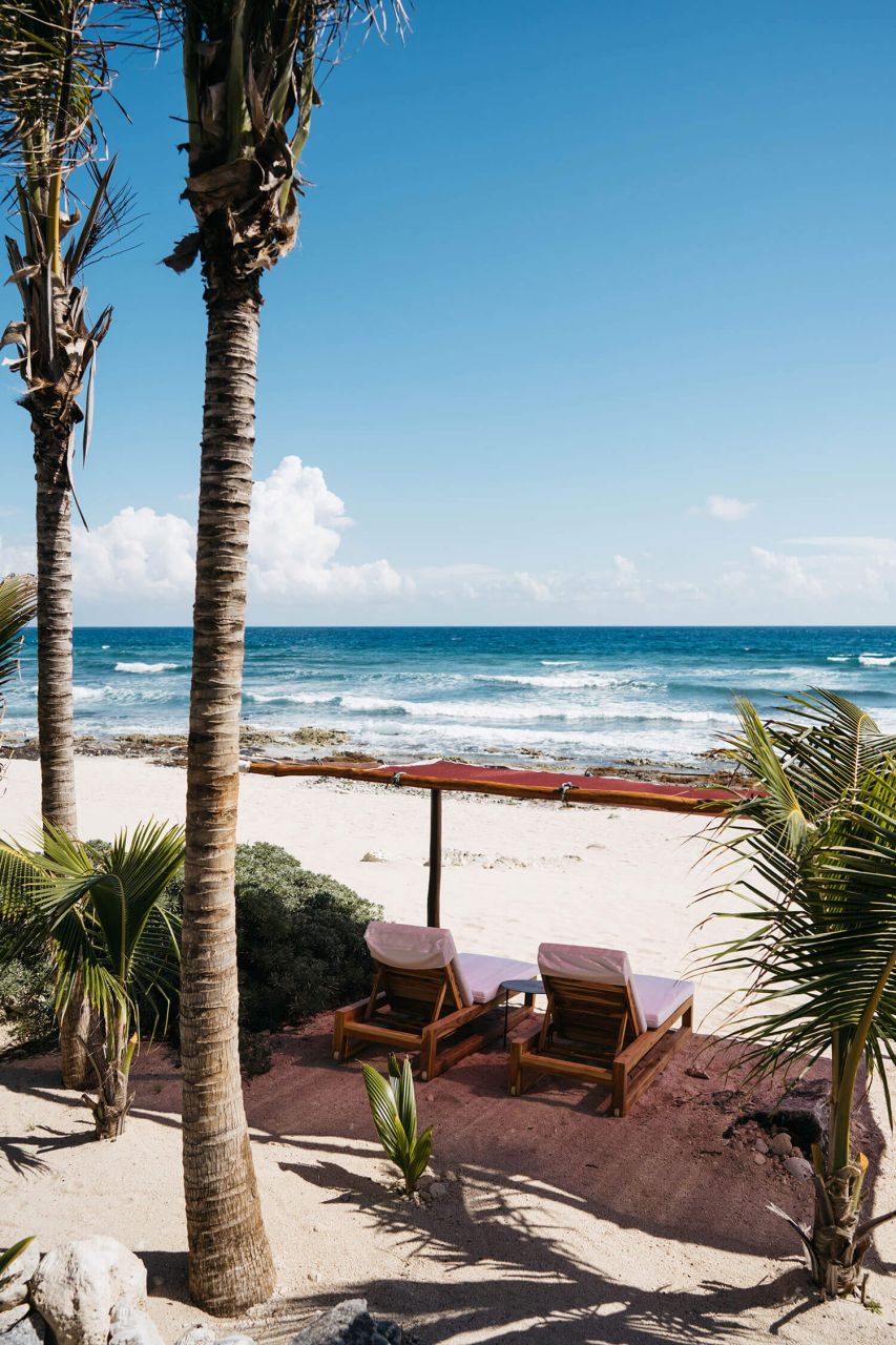 Nestled in a protected ecological zone just minutes from Tulum, the villa invites you to unwind outdoors with incredible turquoise waters and white sandy beaches just steps away. Relax by the oceanfront pool or step off the wooden deck for a swim, surrounded by tranquility and natural beauty.