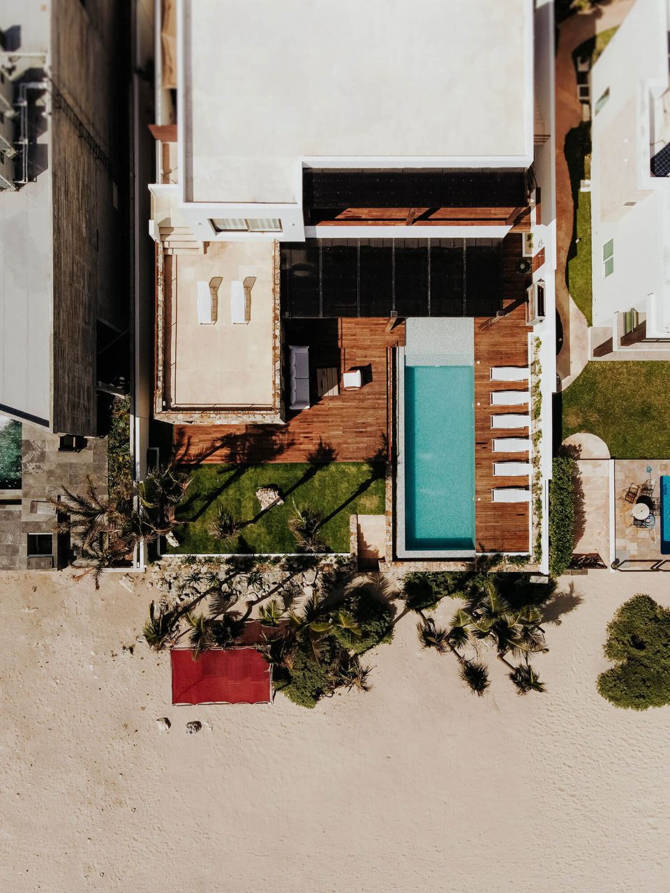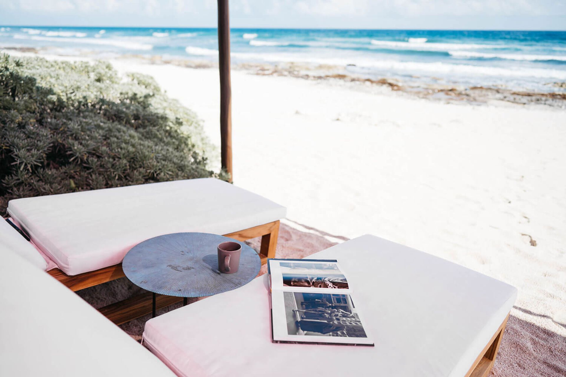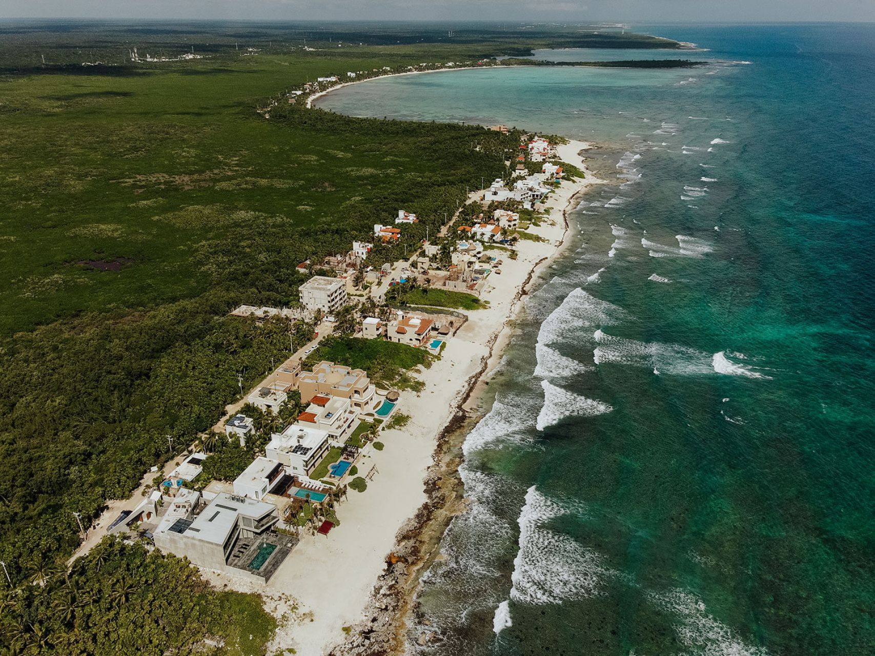 Nestled in a protected ecological zone just minutes from Tulum, the villa invites you to unwind outdoors with incredible turquoise waters and white sandy beaches just steps away. Relax by the oceanfront pool or step off the wooden deck for a swim, surrounded by tranquility and natural beauty.