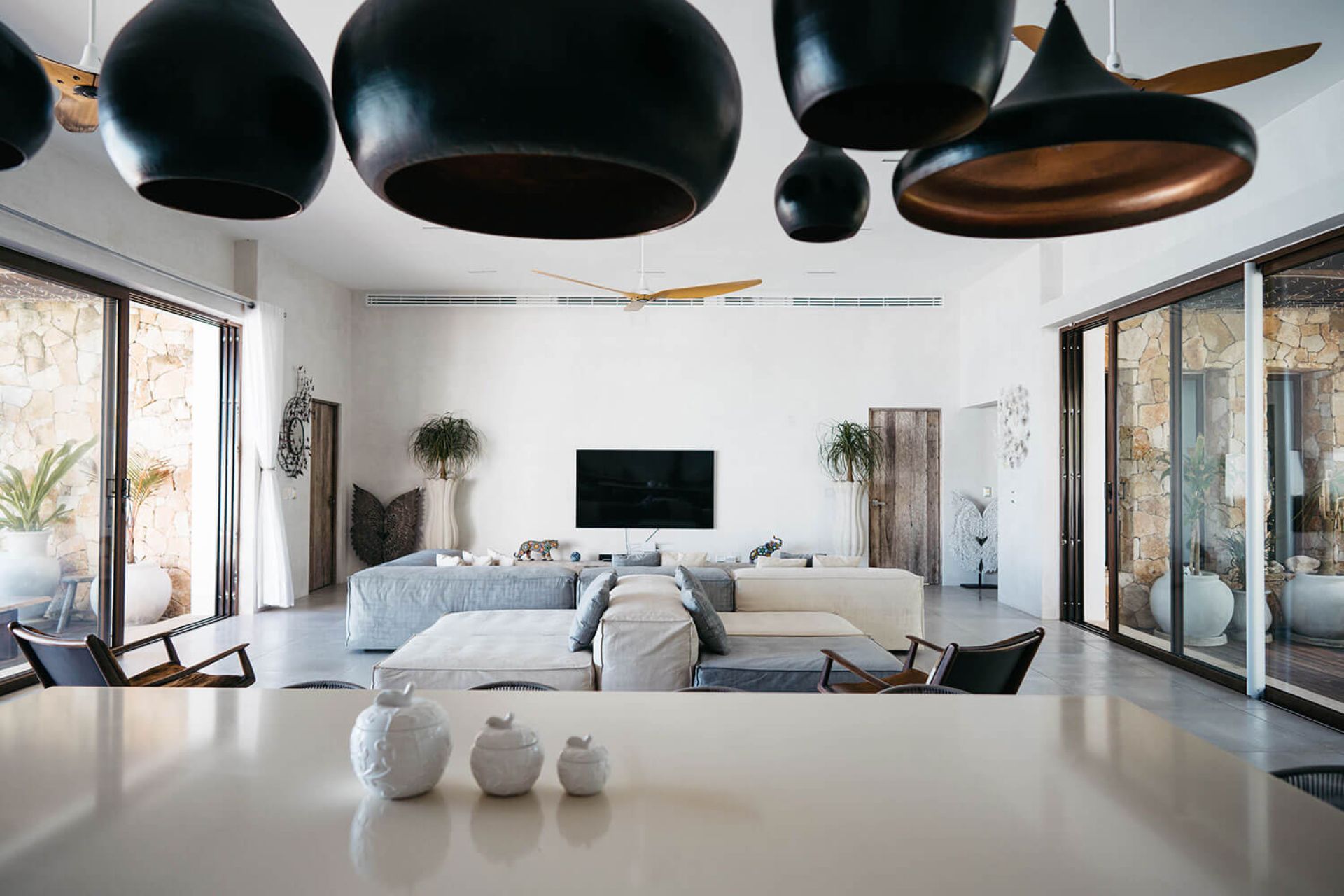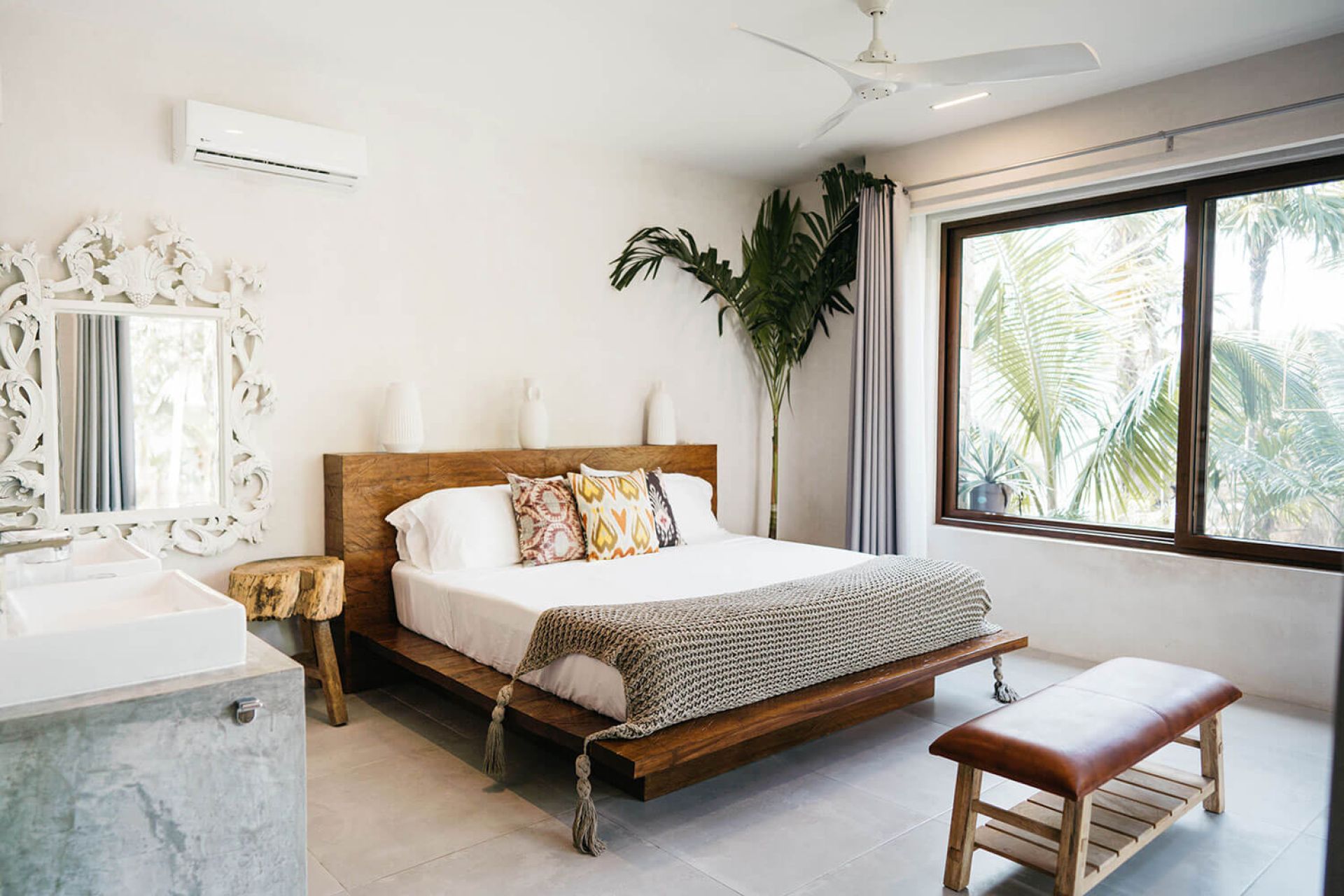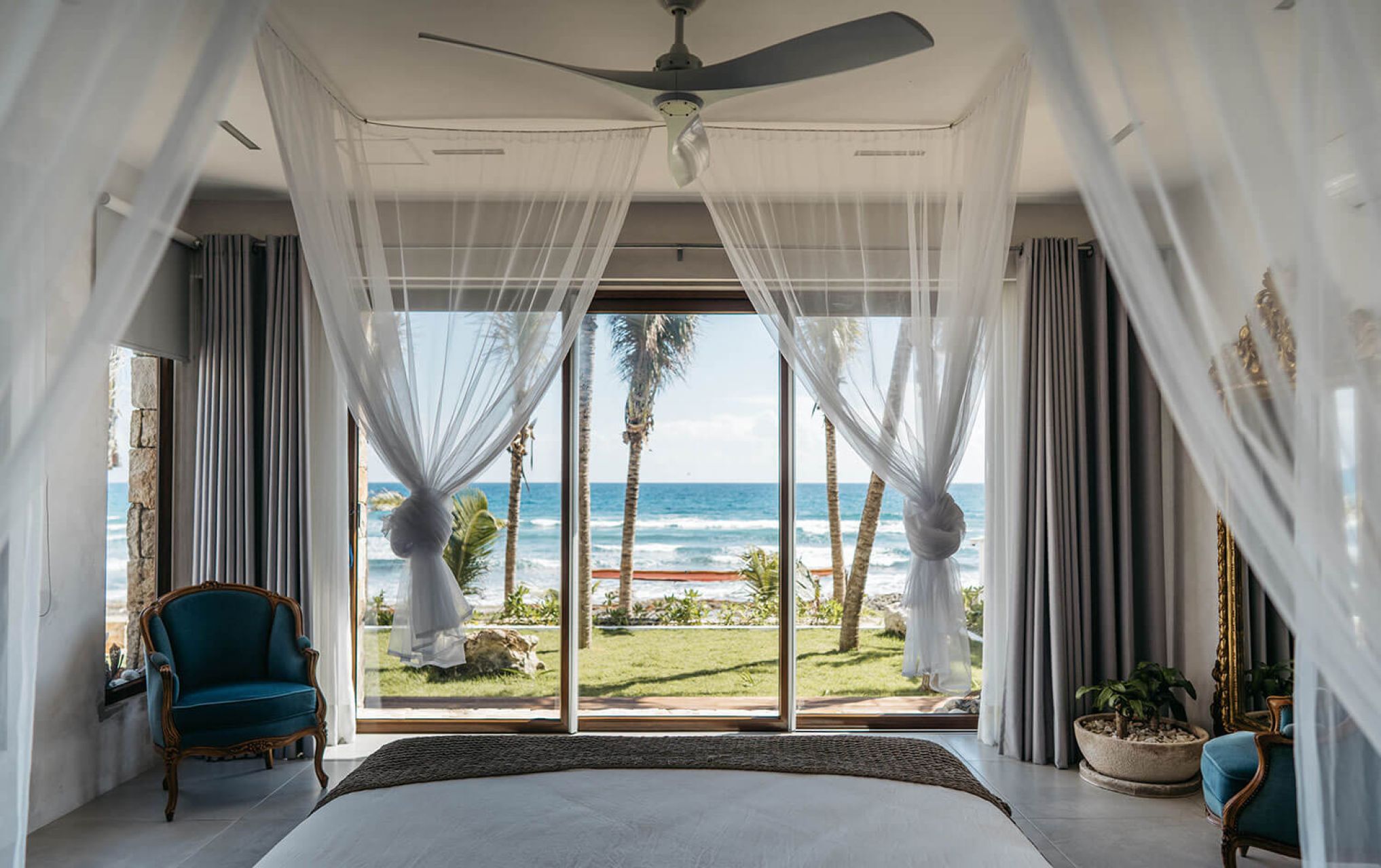 Boasting breathtaking oceanfront views, this sophisticated 5-bedroom villa seamlessly blends with the natural beauty of Tankah Bay. Each spacious bedroom features a king-size bed and a private bathroom, while massive windows offer stunning views of the calming Caribbean waters. The open living area and fully equipped kitchen create the perfect setting for family vacations, friend getaways, or romantic retreats.