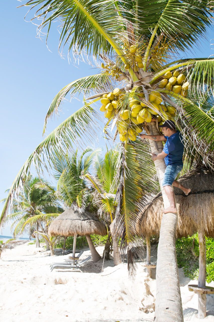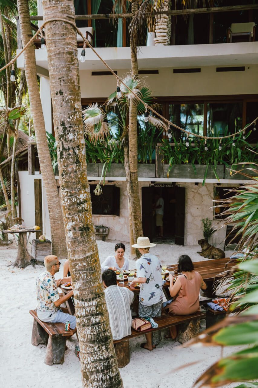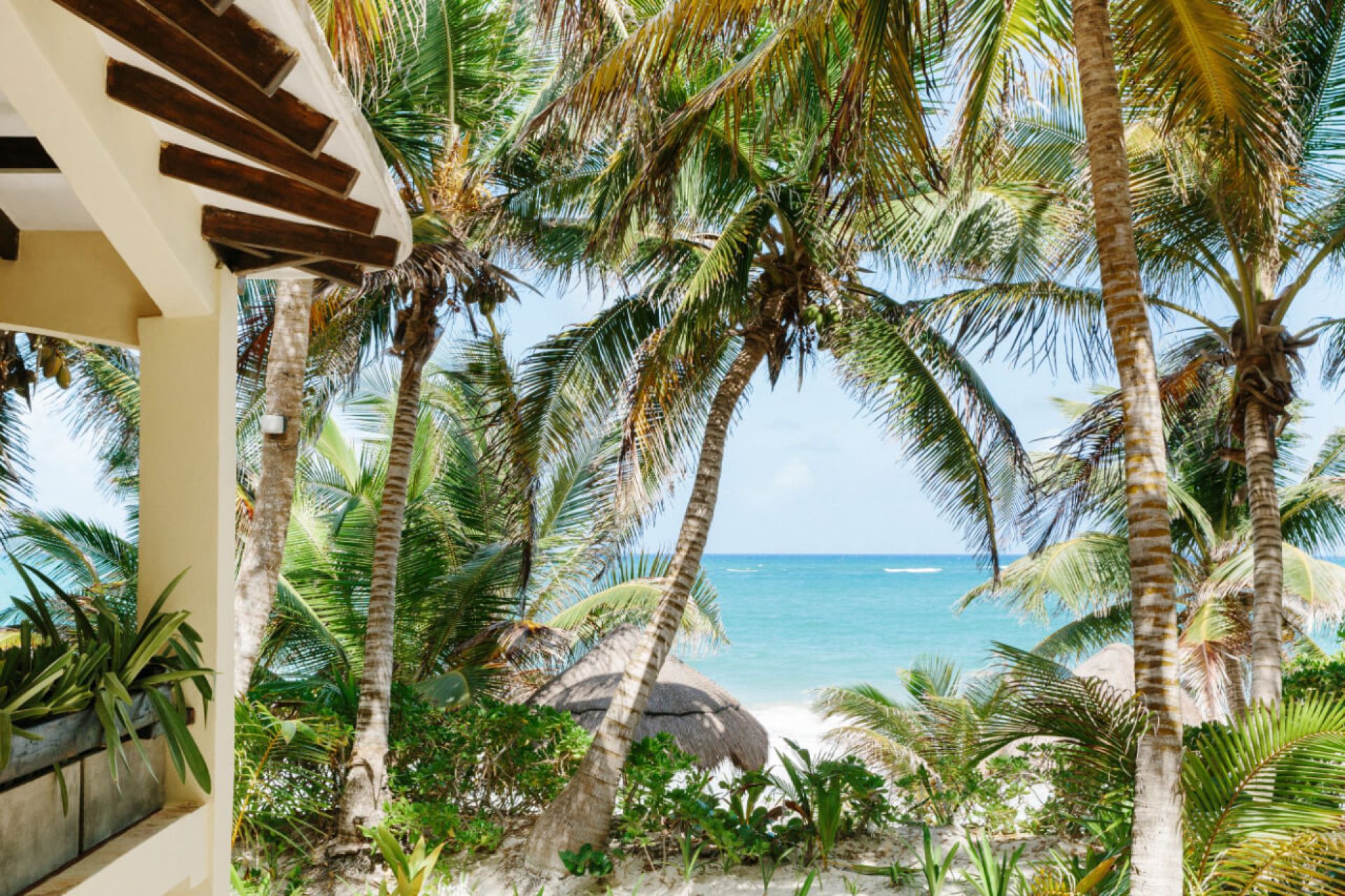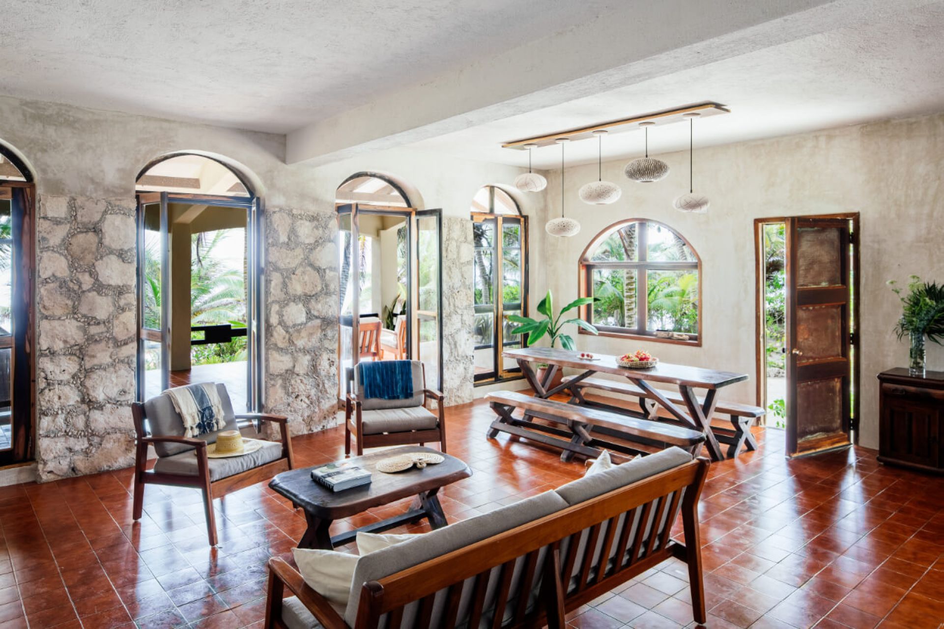 Welcome to Olas, the last property before the entrance to the stunning Sian Ka’an Biosphere. As you arrive, you’ll be welcomed by some of the kindest staff in the Riviera Maya. Palapas and a mature coconut grove, planted over 50 years ago, still offer shade from the afternoon sun. At the heart of the property sits a handcrafted Mayan communal table, built to last generations. It’s here that guests gather—sharing stories, laughter, and vibrant meals from the nearby kitchen, just steps away.