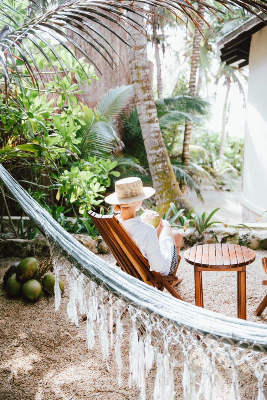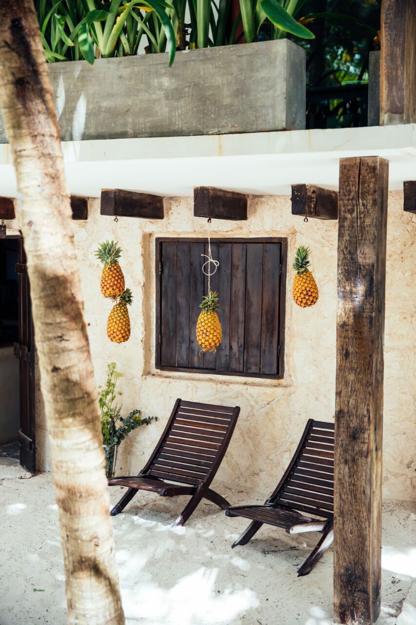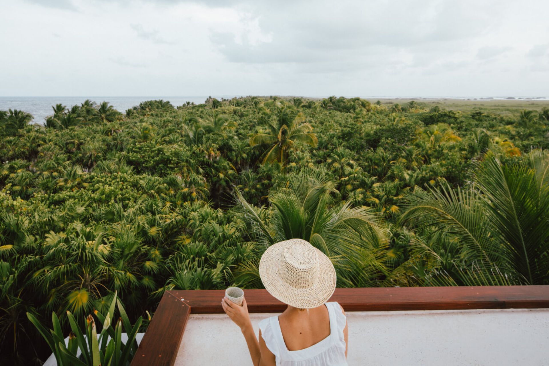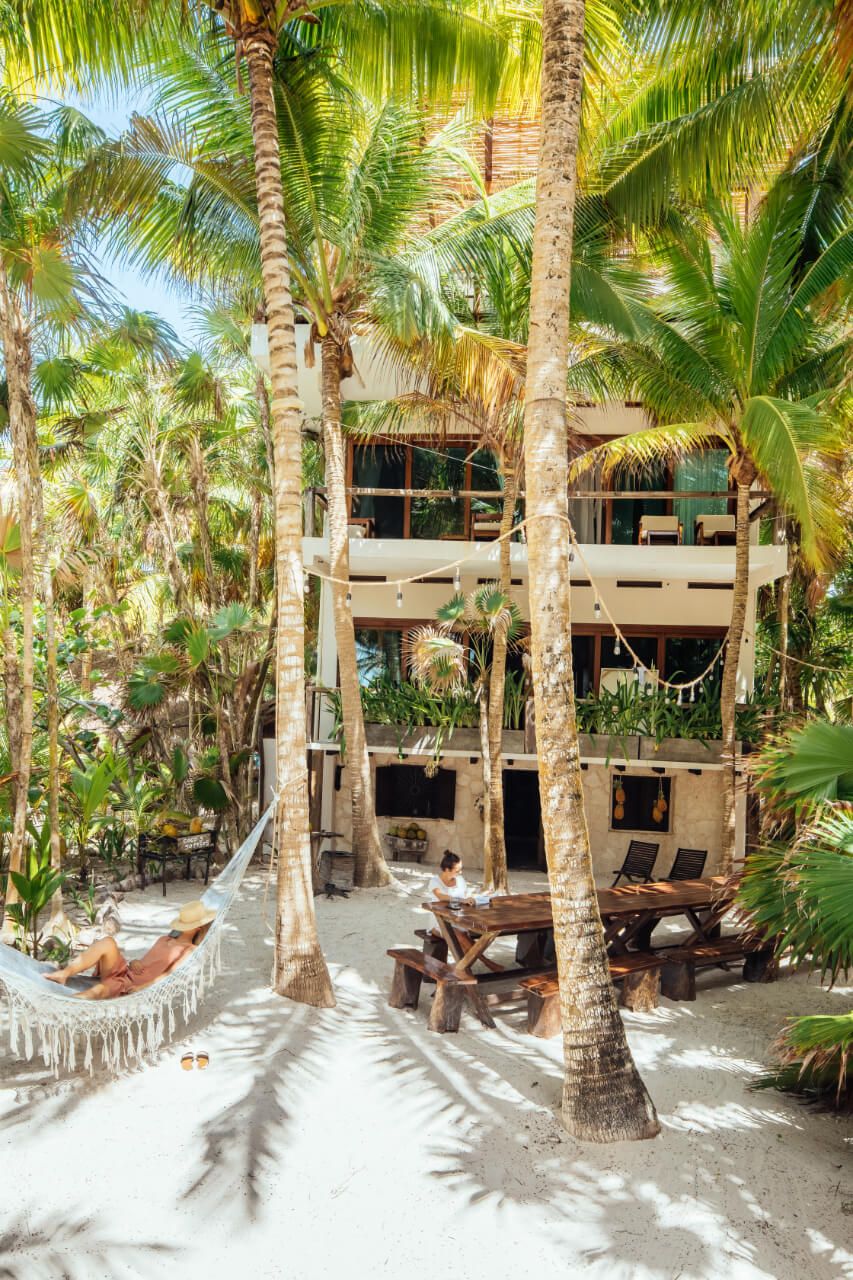 Welcome to Olas, the last property before the entrance to the stunning Sian Ka’an Biosphere. As you arrive, you’ll be welcomed by some of the kindest staff in the Riviera Maya. Palapas and a mature coconut grove, planted over 50 years ago, still offer shade from the afternoon sun. At the heart of the property sits a handcrafted Mayan communal table, built to last generations. It’s here that guests gather—sharing stories, laughter, and vibrant meals from the nearby kitchen, just steps away.