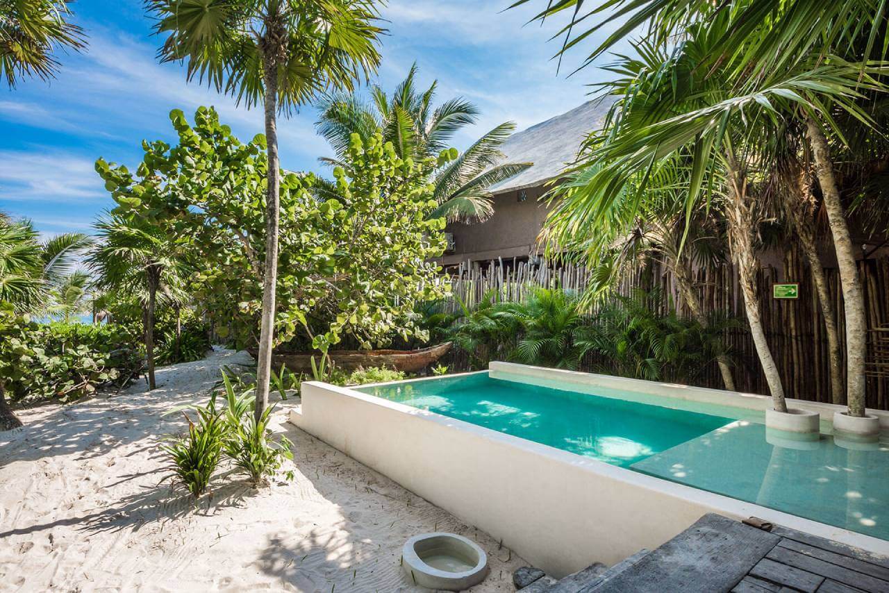 Experience the ultimate in barefoot luxury at this stunning compound on Tulum Beach, where Mexican architecture meets the raw beauty of the jungle. Just steps from the Caribbean’s white sands and turquoise waves, the property features three unique casitas nestled among lush tropical gardens. Ideal for large groups, the entire compound can be rented together, or each villa can be booked individually. Located in the heart of the action, you’re just moments away from Tulum’s most iconic restaurants and nightlife—Gitano, Rosa Negra, and Hartwood are practically at your doorstep.