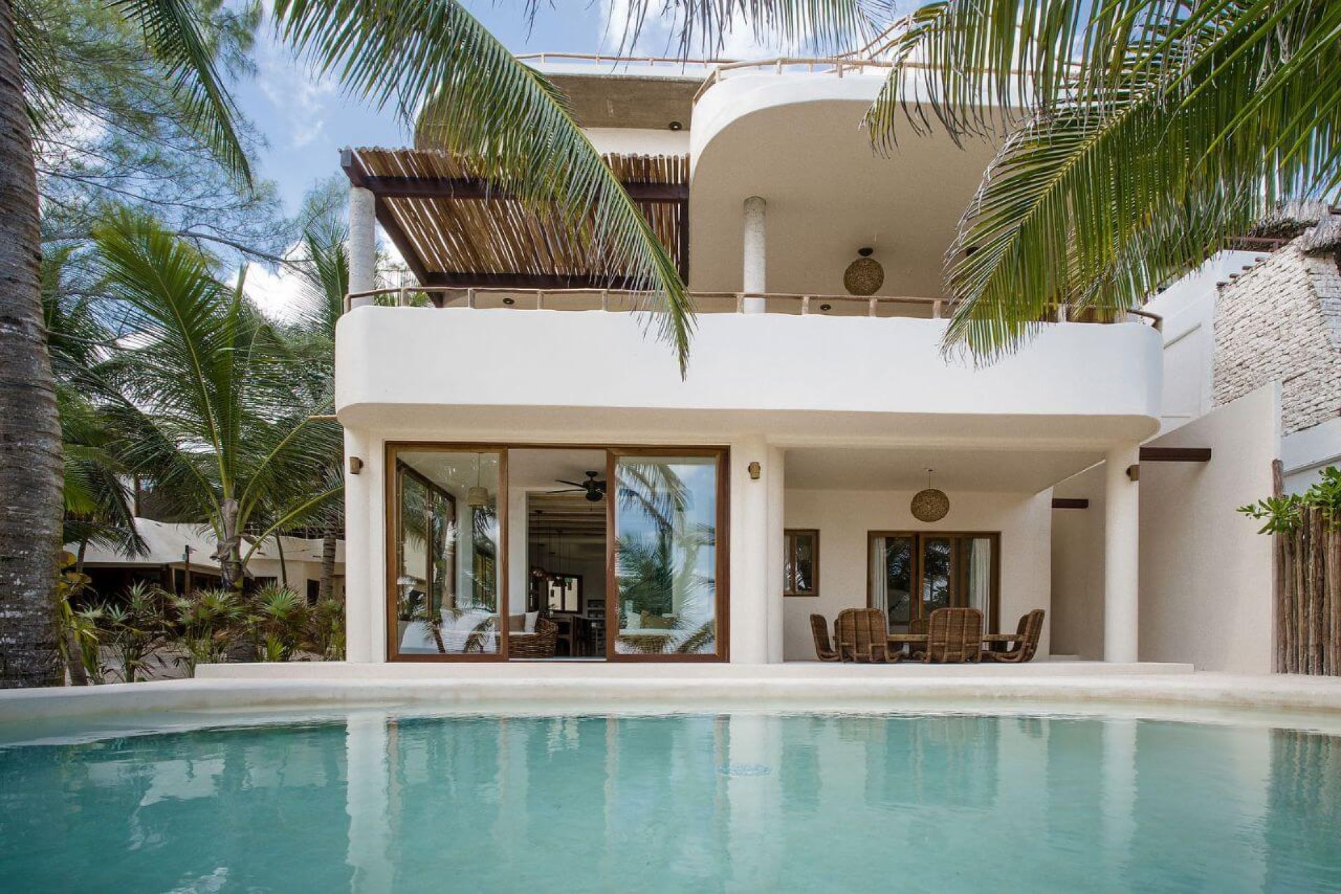 Set on the soft sands of Tulum Beach, this spacious 5-bedroom villa is part of a shared beachfront property with access to a large communal pool, rooftop terrace, yoga studio, and direct access to the Caribbean Sea. Guests can relax on beach beds under swaying palms, take out kayaks or paddle boards to explore the coast, or enjoy a private chef dinner under the stars. Located in the heart of Tulum, the villa is just steps away from restaurants, beach clubs, shops, and the town’s lively nightlife. A private seaside pool and outdoor lounging areas add to the relaxed tropical vibe, making this villa ideal for families or groups of friends.