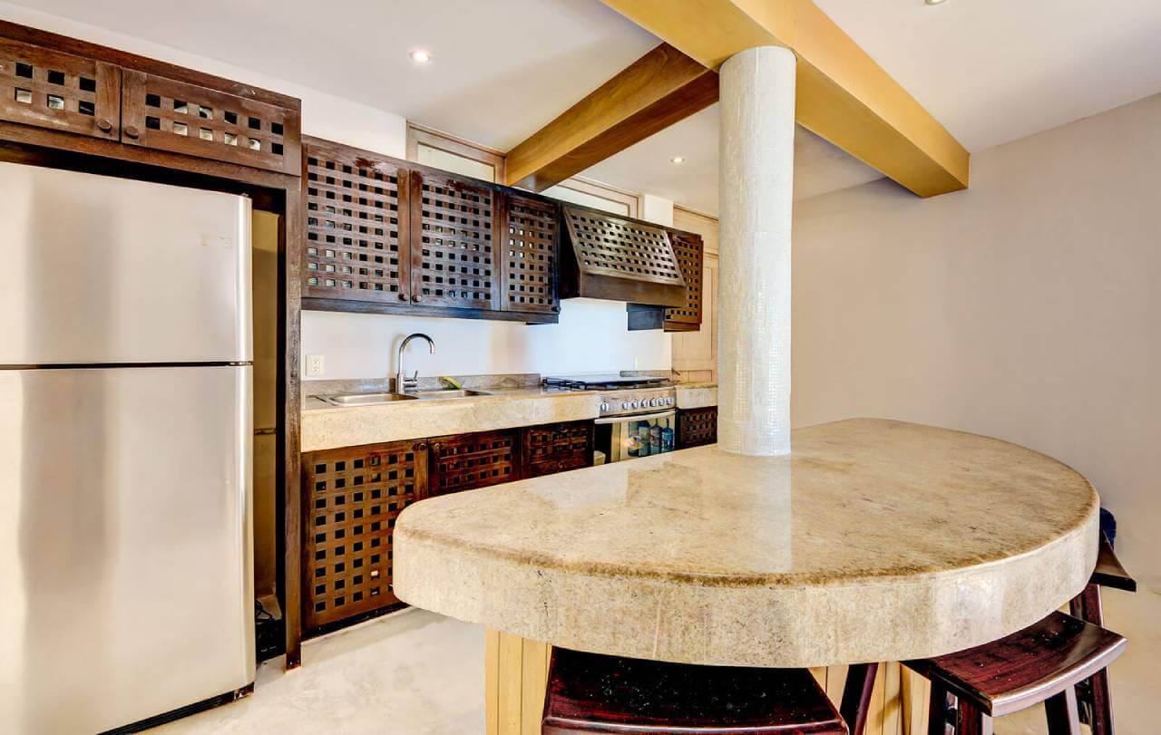Outside, relax on the beach, swim or snorkel in crystal-clear waters, or stargaze from the deck while enjoying the ocean breeze. From upstairs, enjoy stunning jungle sunsets or early sunrises from the palapa or pool. The fully equipped kitchen is perfect for cooking or hosting a gourmet chef. With eco-parks, cenotes, shopping, and nightlife nearby, this villa offers a perfect luxury retreat in Tulum.